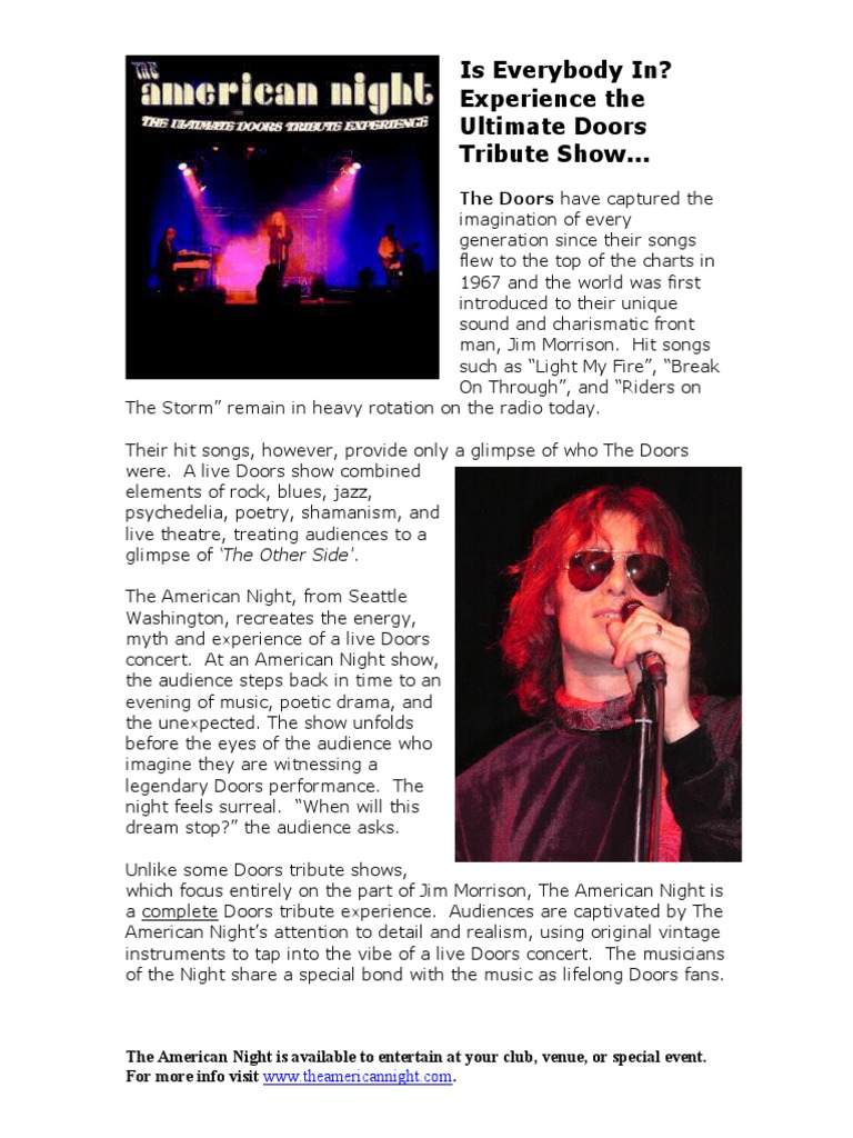 (The American Night is a touring Doors tribute show, available to