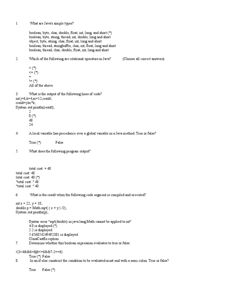 2. Which of the following are relational operators in Java? (Choose all correct answers)