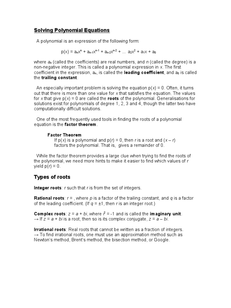 roots a polynomial has. Knowing that a polynomial of degree n has n roots,