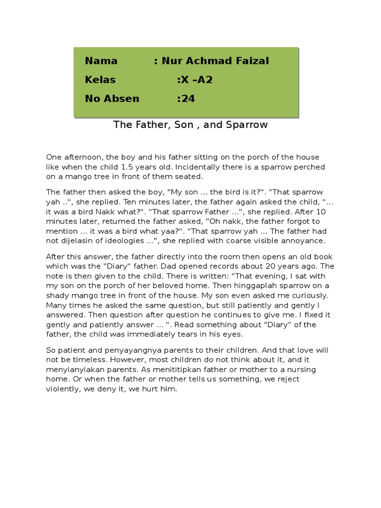 The father then asked the boy, "My son ... the bird is it?". "That sparrow