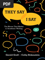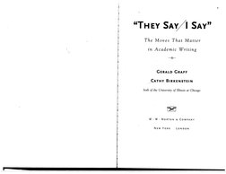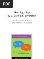 They Say: Explains the importance of starting with what others are saying in academic writing and introduces templates for this purpose.