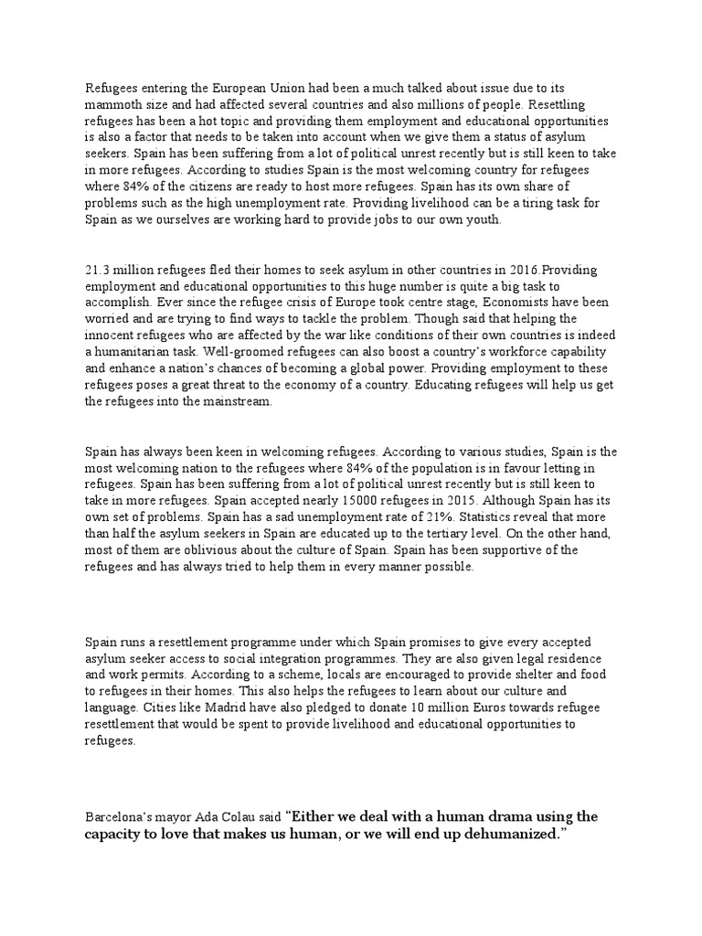 refugees. Spain has been suffering from a lot of political unrest recently but is still keen to