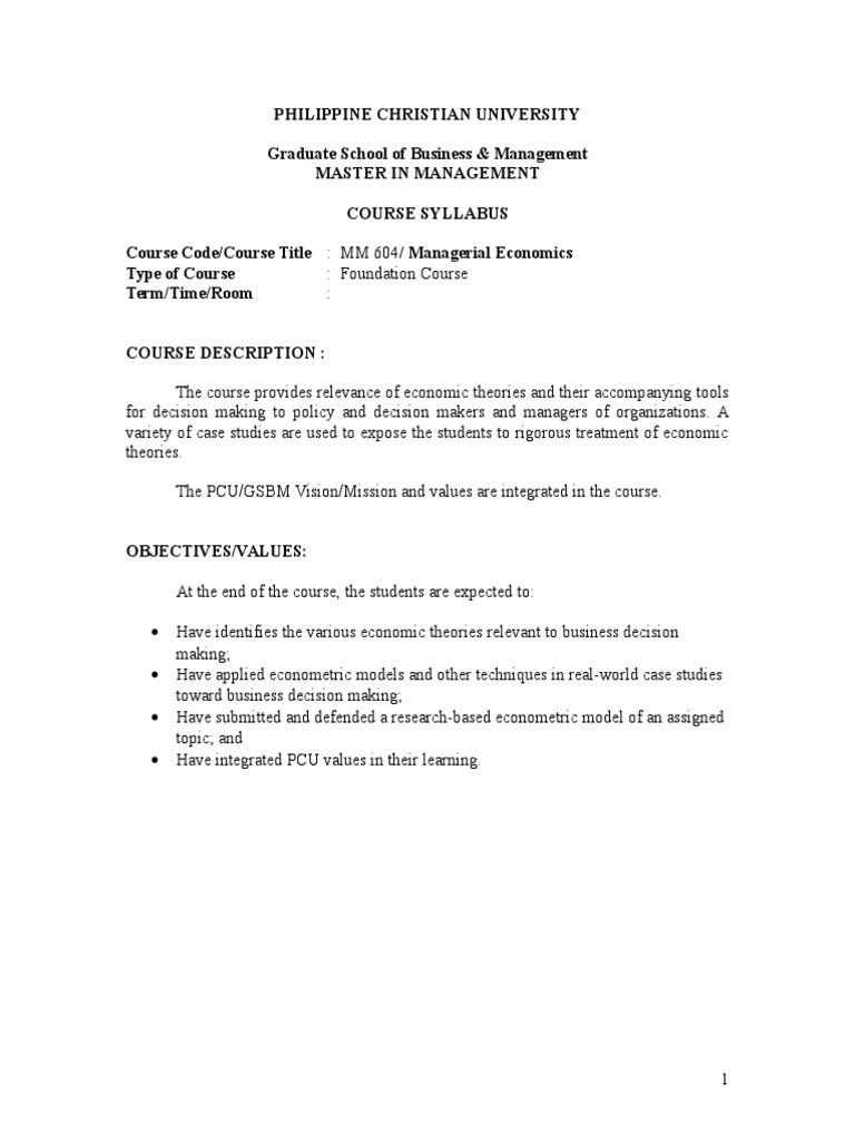 variety of case studies are used to expose the students to rigorous treatment of economic