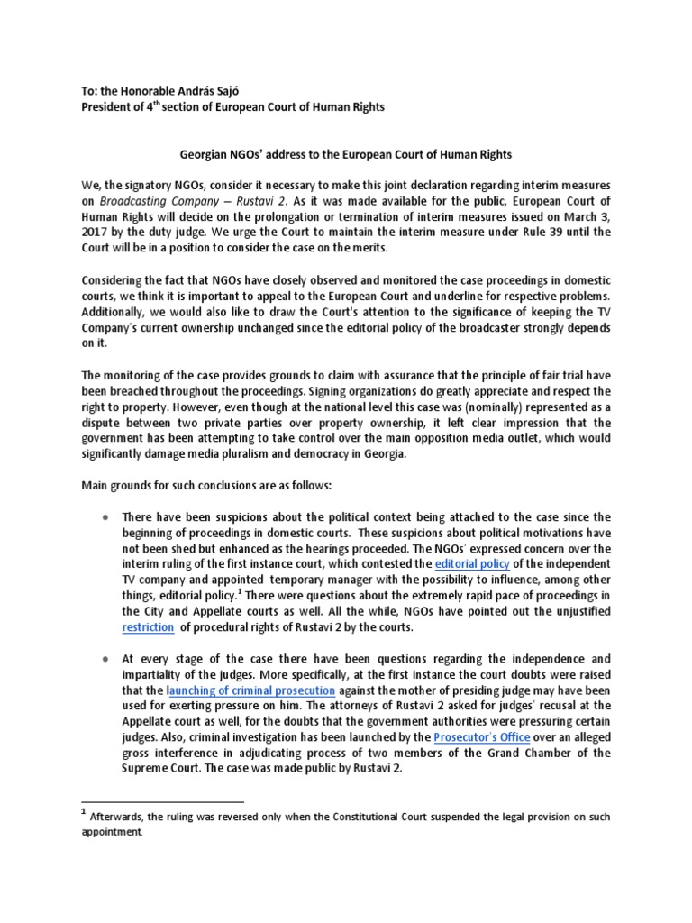NGOs' Address To The European Court
