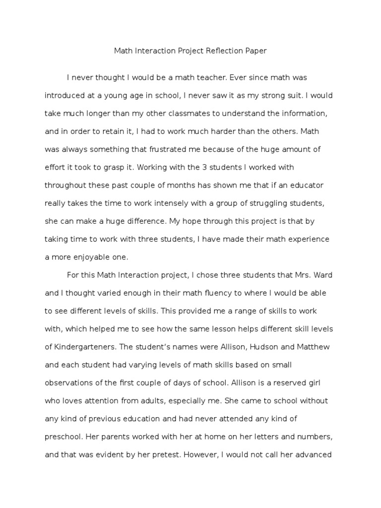Math Interaction Project Reflection Paper