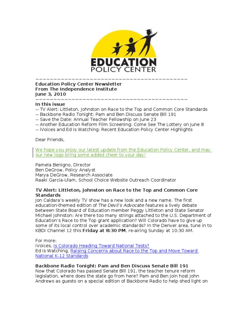 We hope you enjoy our latest update from the Education Policy Center, and may