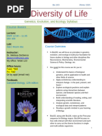cell division, species diversity, and species classification. This course attempts to relate the subject matter to everyday