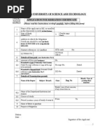 APPLICATION FORM FOR INTER UNIVERSITY MIGRATION CERTIFICATE
