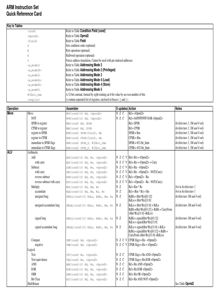 Add ADD{cond}{S} Rd, Rn, <Oprnd2> N Z C V
