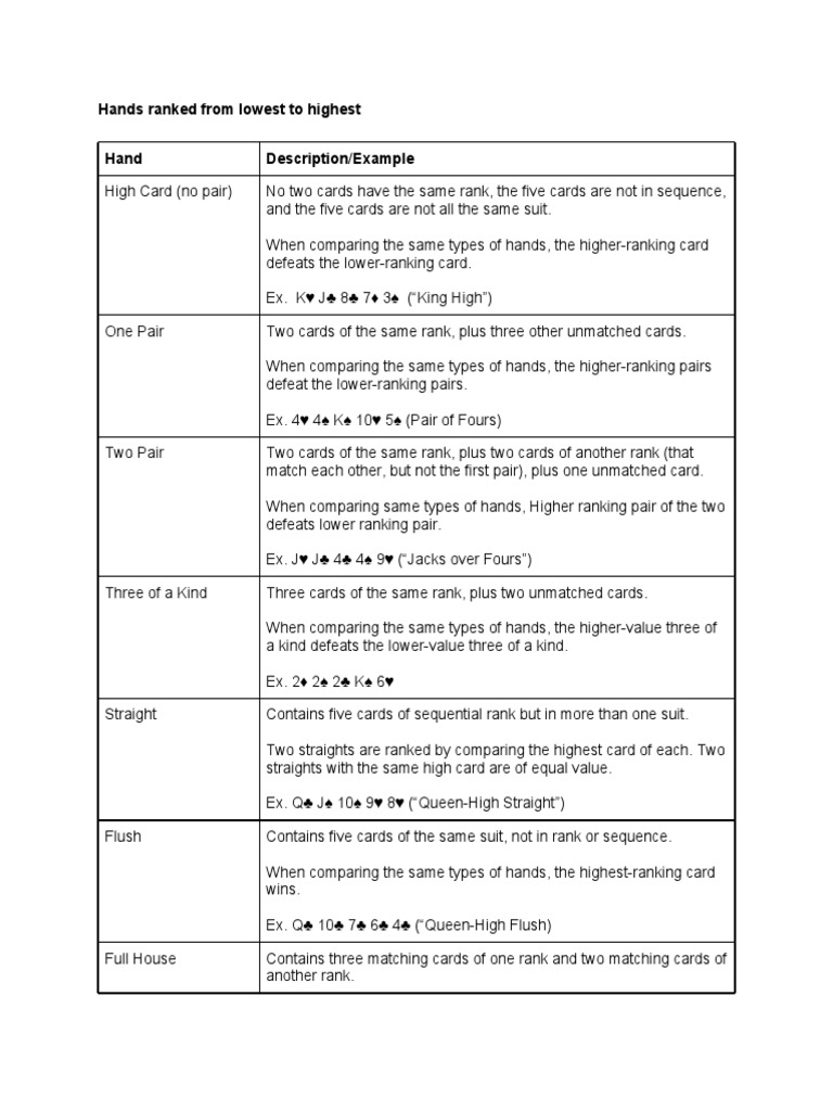 High Card (no pair) No two cards have the same rank, the five cards are not in sequence,