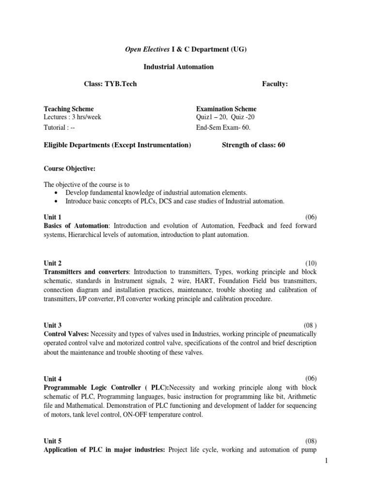 systems, Hierarchical levels of automation, introduction to plant automation.