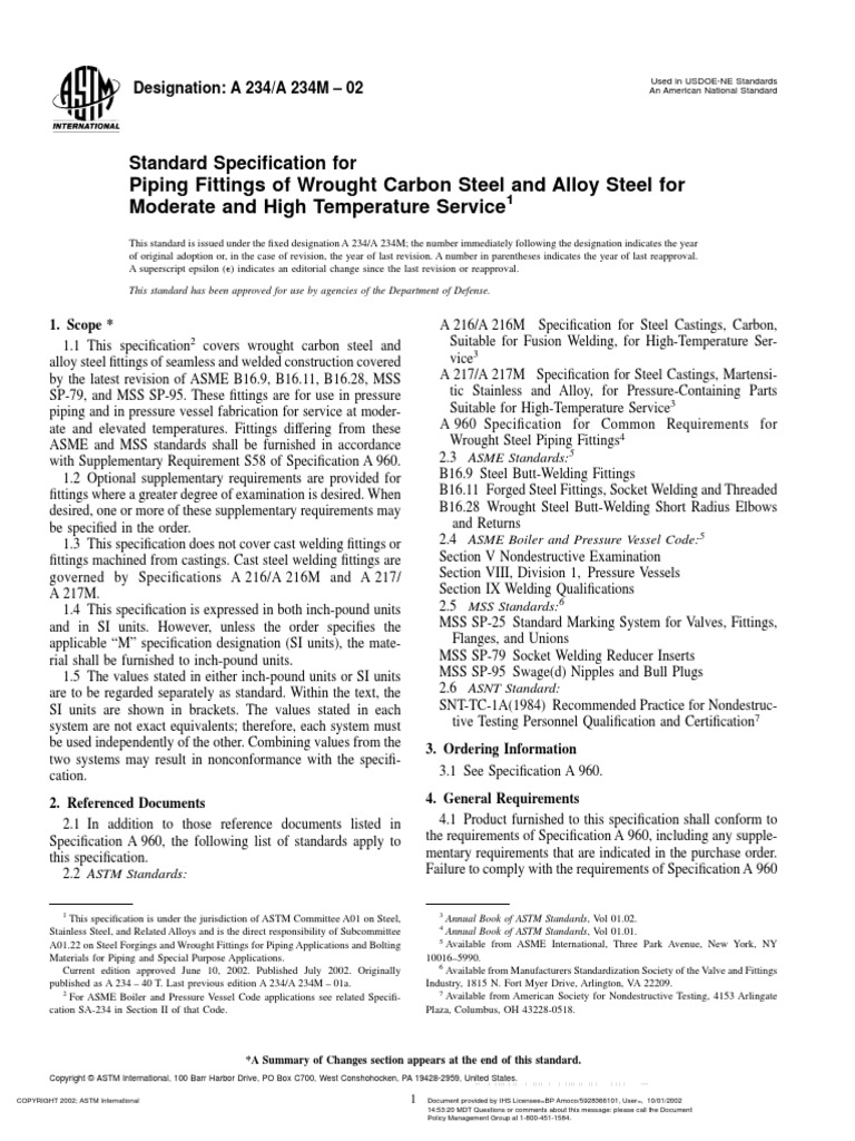 published as A 234 40 T. Last previous edition A 234/A 234M 01a. Industry, 1815 N. Fort Myer Drive, Arlington, VA 22209.