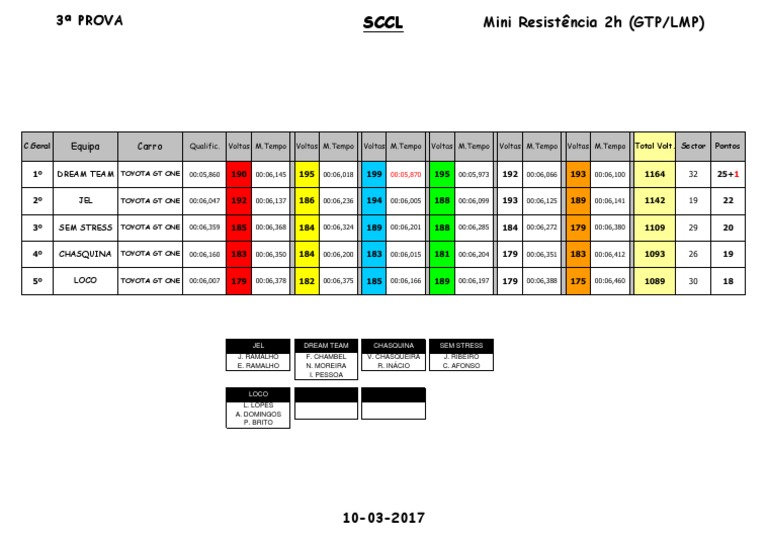 [Link] Equipa Carro Qualific. Voltas [Link] Voltas [Link] Voltas [Link] Voltas [Link] Voltas [Link] Voltas [Link] Total Volt. Sector Pontos