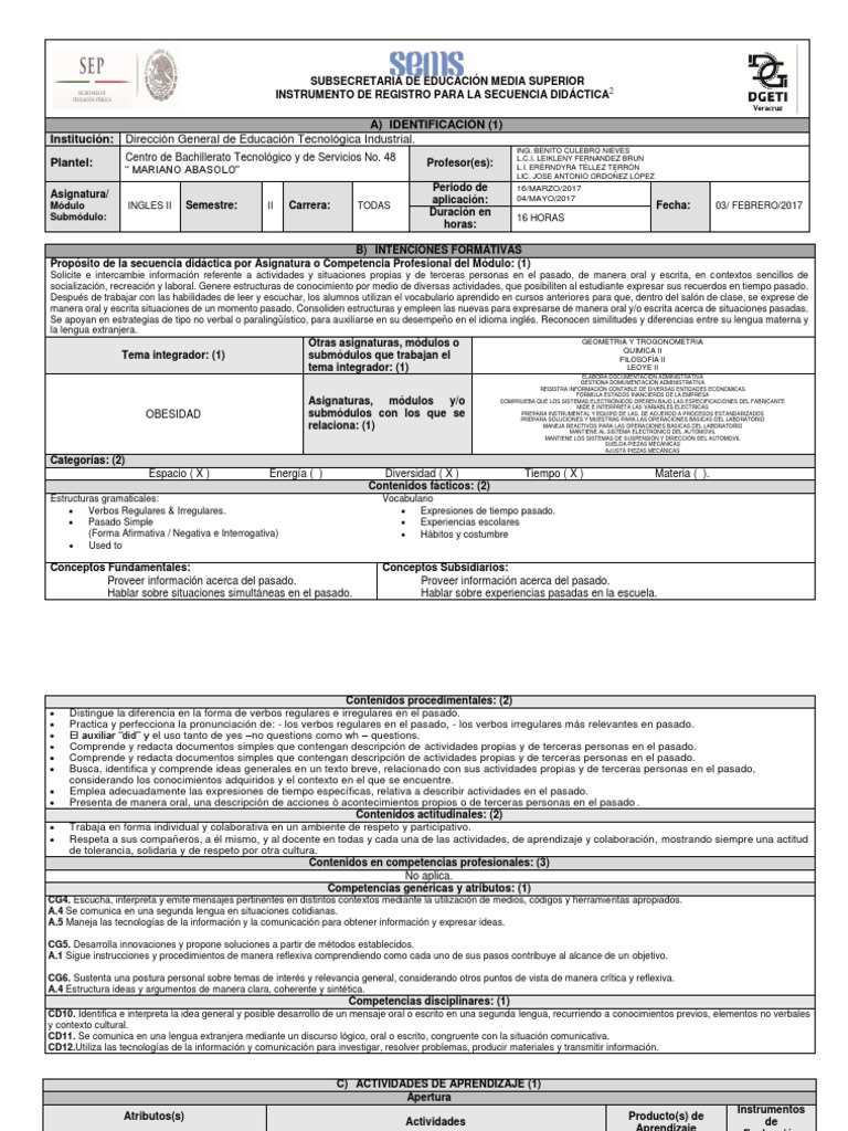 Propsito de la secuencia didctica por Asignatura o Competencia Profesional del Mdulo: (1)