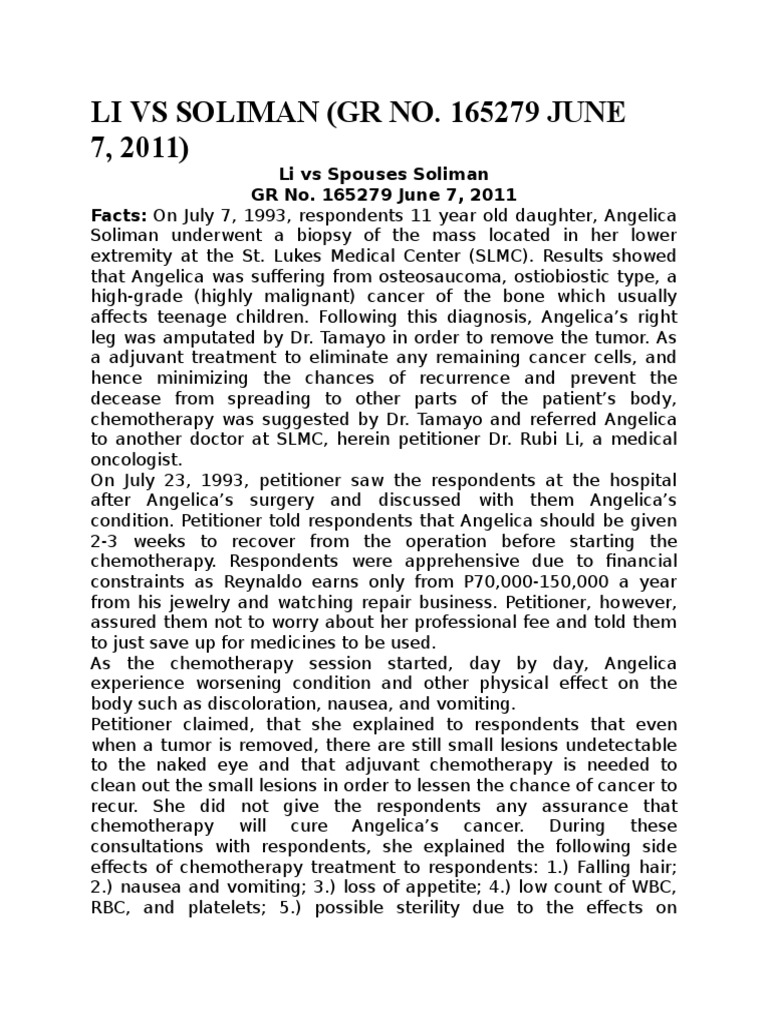 to another doctor at SLMC, herein petitioner Dr. Rubi Li, a medical