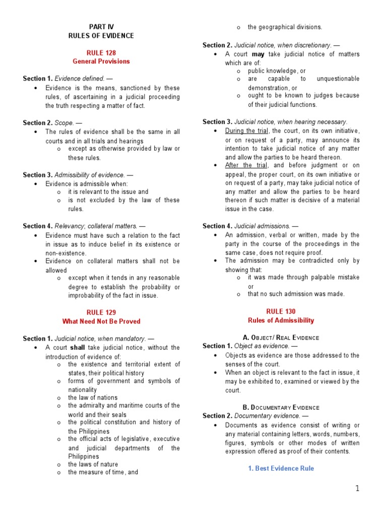 Section 1. Judicial notice, when mandatory. A. OBJECT/ REAL EVIDENCE