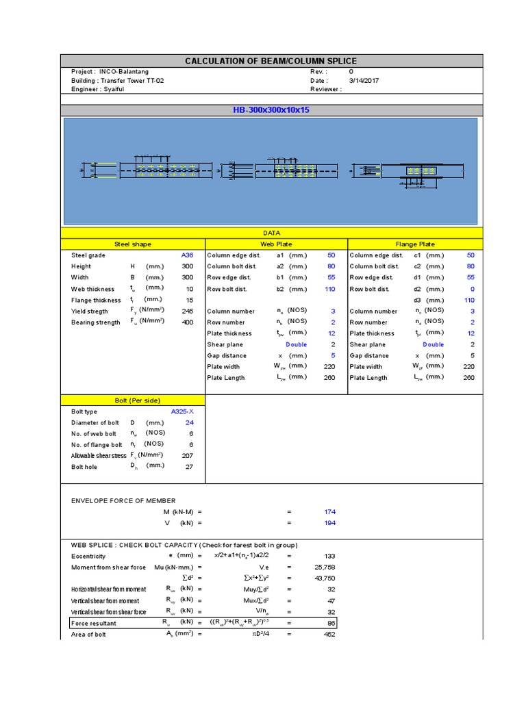 CALCULATION OF BEAM/COLUMN SPLICE