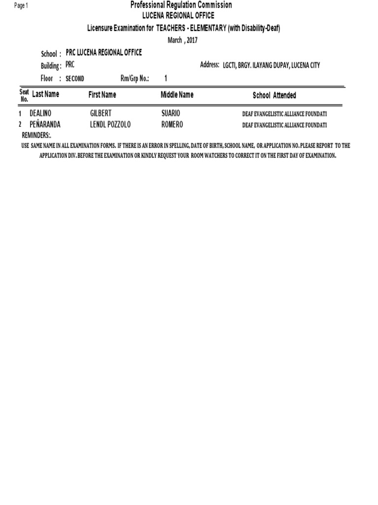 Page 1 Professional Regulation Commission