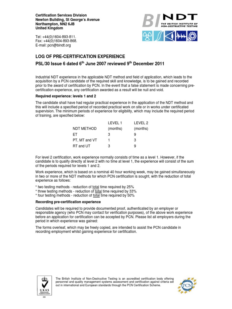 The British Institute of Non-Destructive Testing is an accredited certification body offering