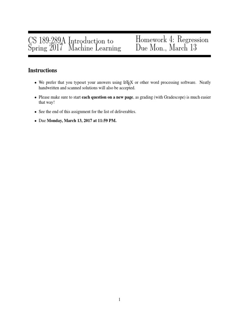 CS 189:289A Introduction to Homework 4: Regression