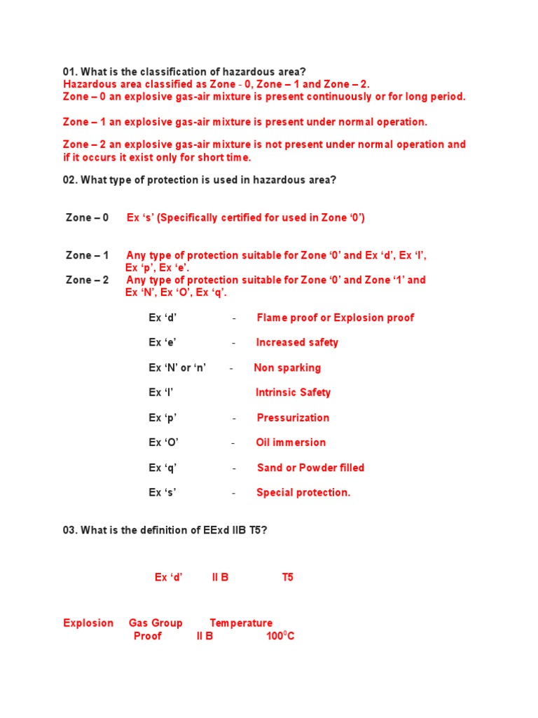 Hazardous area classified as Zone - 0, Zone 1 and Zone 2.