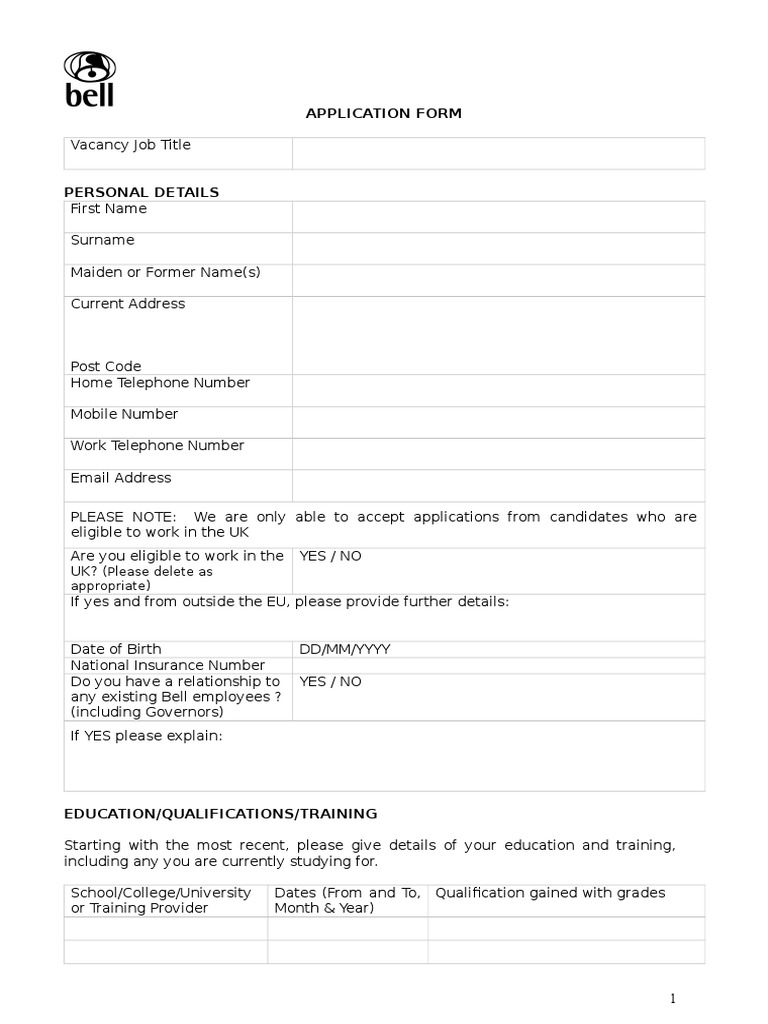 School/College/University Dates (From and To, Qualification gained with grades