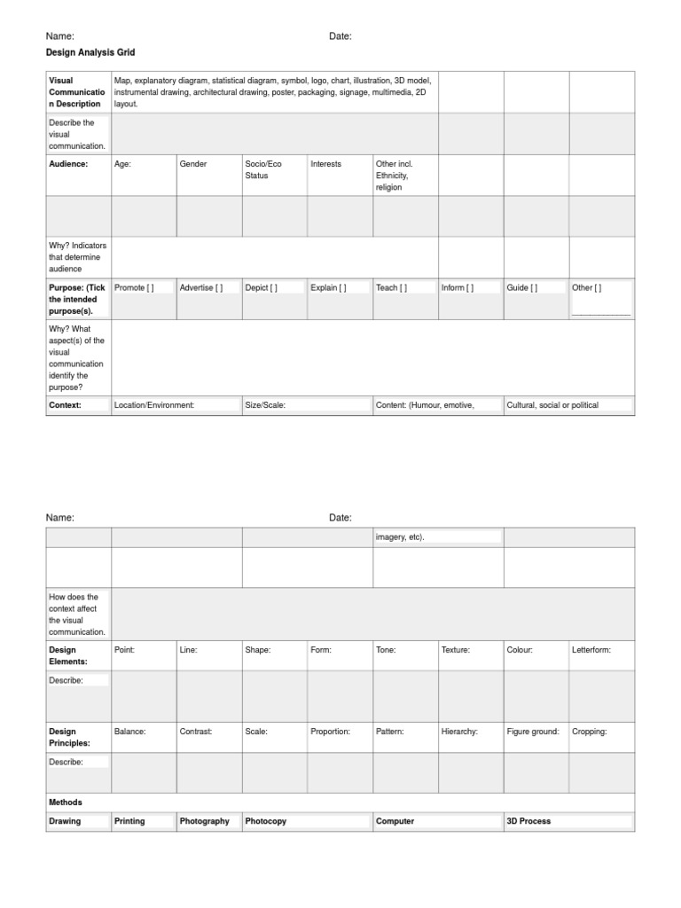 This grid enables you to collect information about visual communications. The information will assist you when describing and analysing the examples