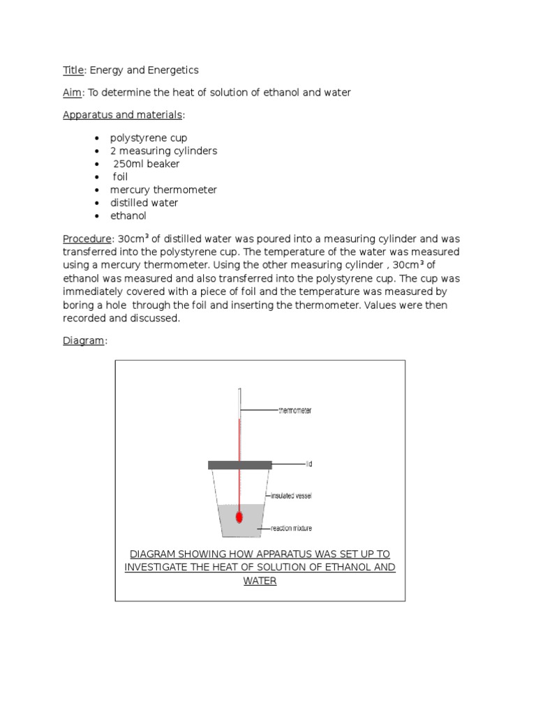 INVESTIGATE THE HEAT OF SOLUTION OF ETHANOL AND