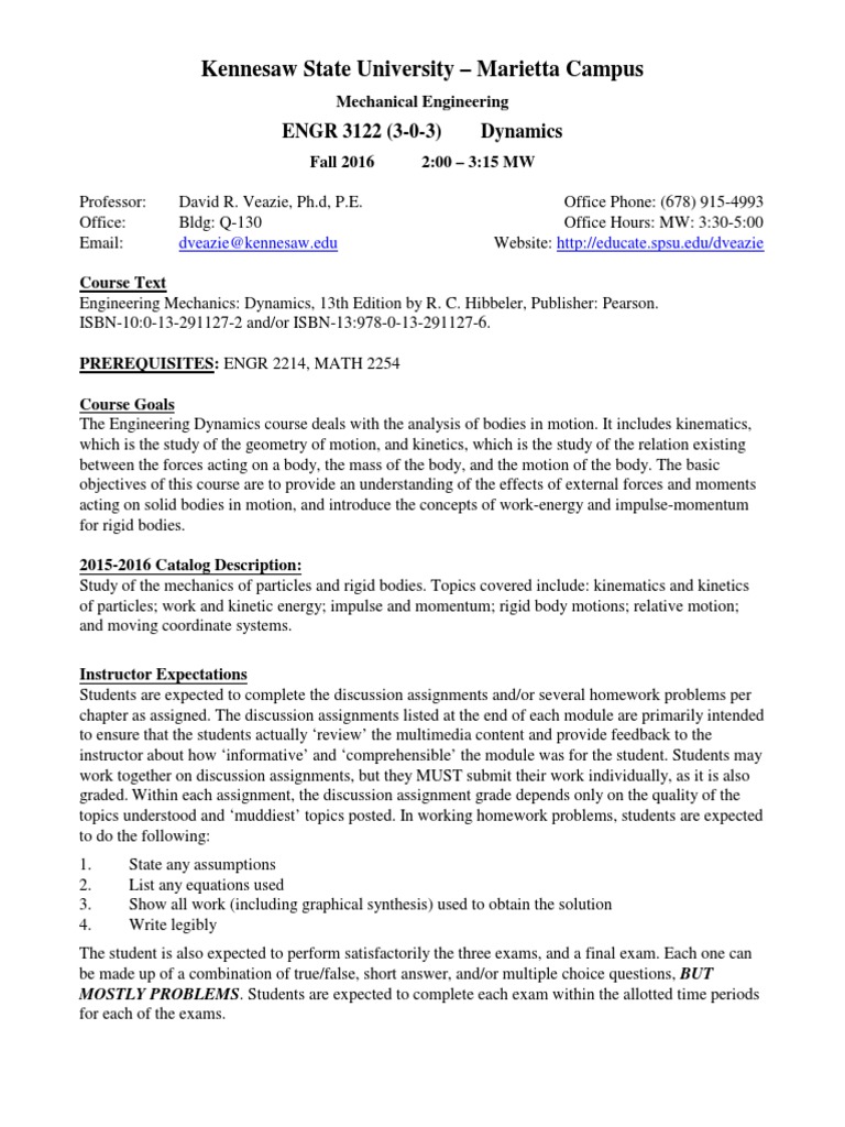 the course. One will only pass this course by demonstrating a fundamental understanding of Dynamics