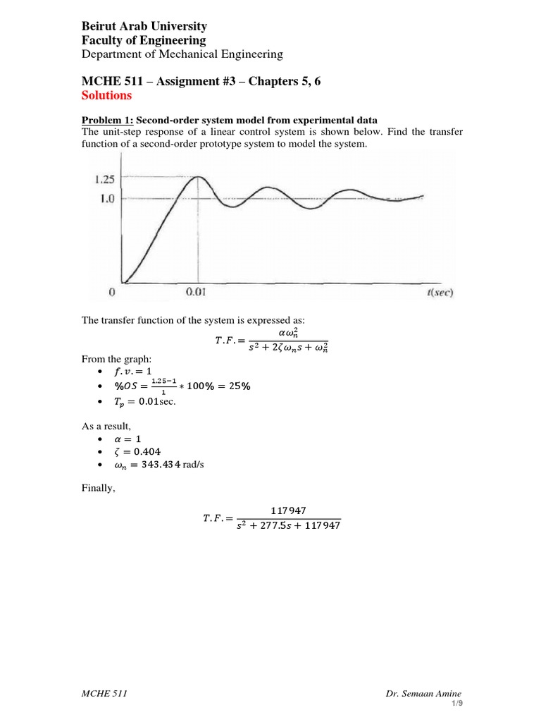 Problem 3: Performance evaluation of a 2nd order system