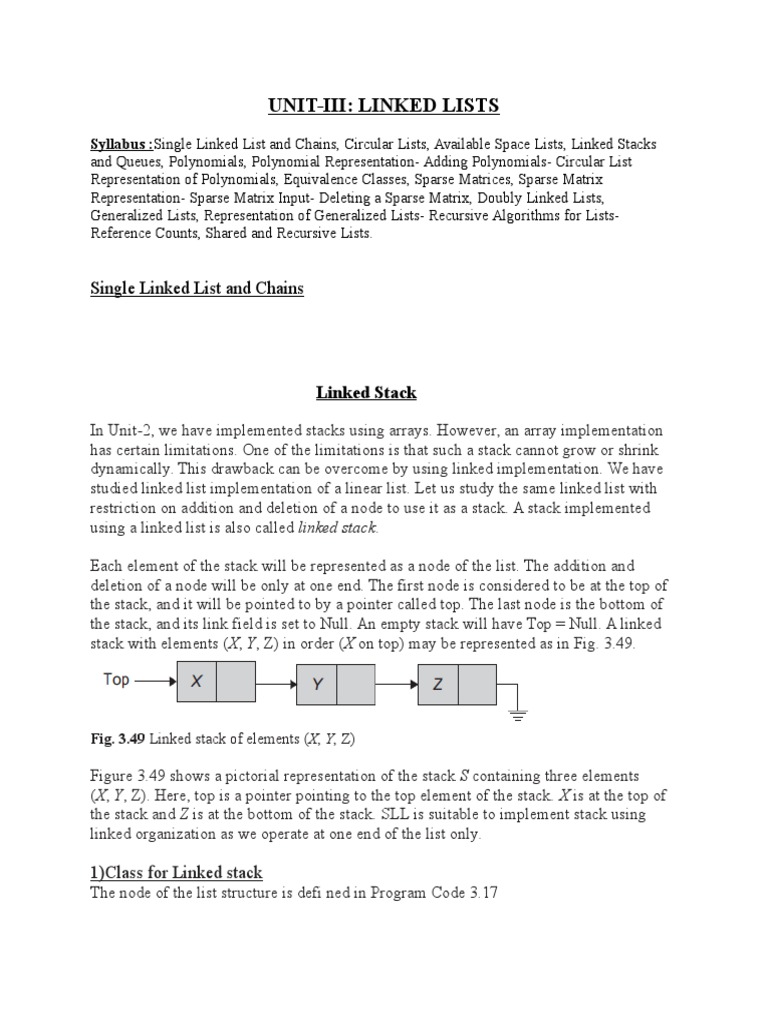 Syllabus :Single Linked List and Chains, Circular Lists, Available Space Lists, Linked Stacks