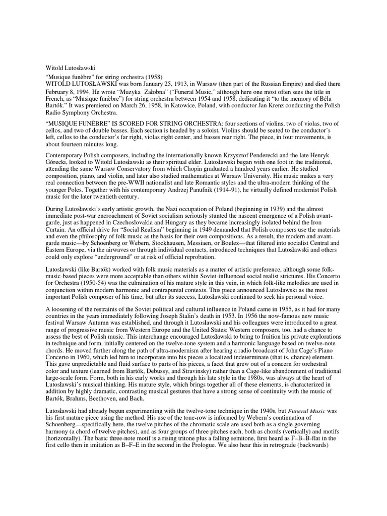 Lutosławski's Musique Funèbre Overview