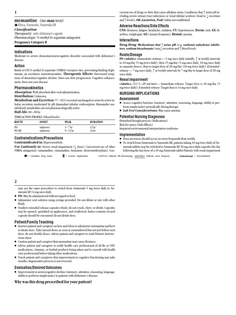 memantine (me-man-teen) andqlevels); OB, Lactation, Pedi: Safety not established.