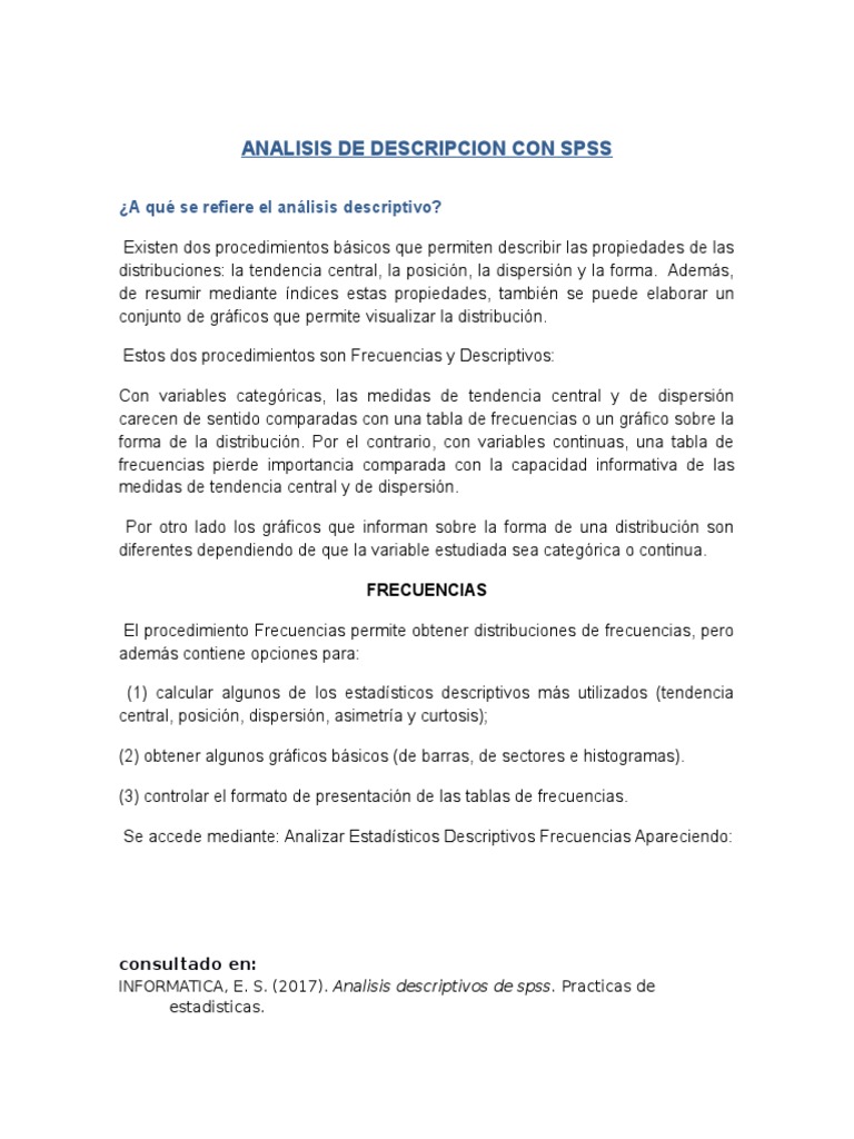 INFORMATICA, E. S. (2017). Analisis descriptivos de spss. Practicas de
