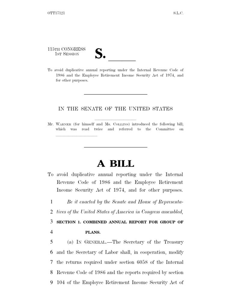 To avoid duplicative annual reporting under the Internal Revenue Code of 1986 and the Employee Retirement Income Security Act of 1974, and for other purposes.