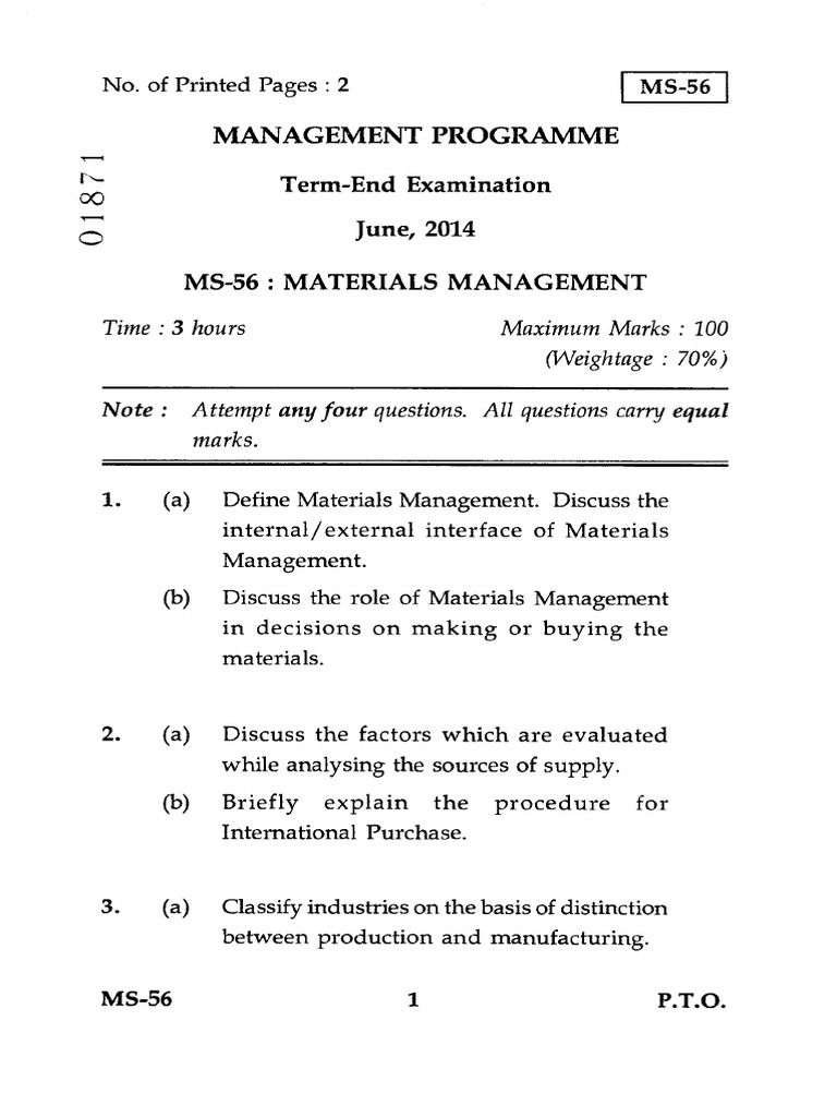 MS-56 : MATERIALS MANAGEMENT