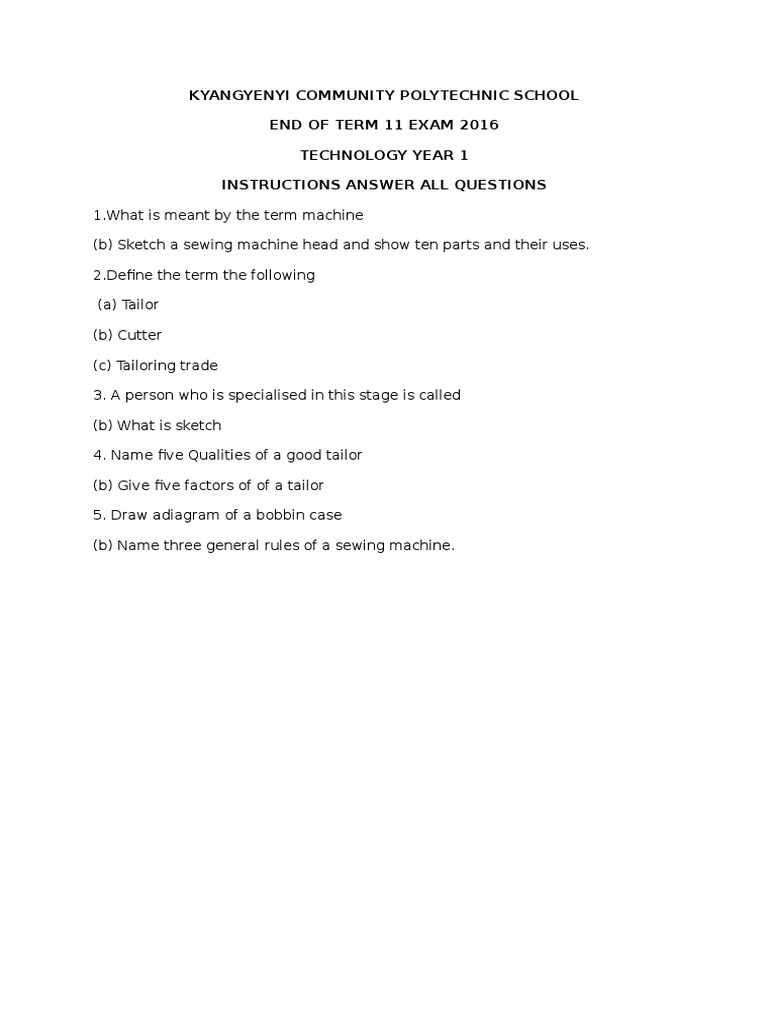 END OF TERM 11 EXAM 2016