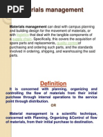 to the product itself Materials Management is the process of management which