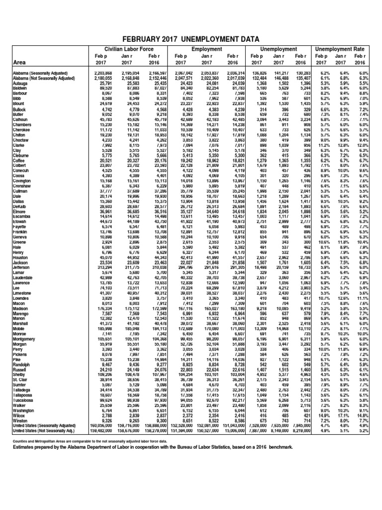 FEBRUARY 2017 UNEMPLOYMENT DATA