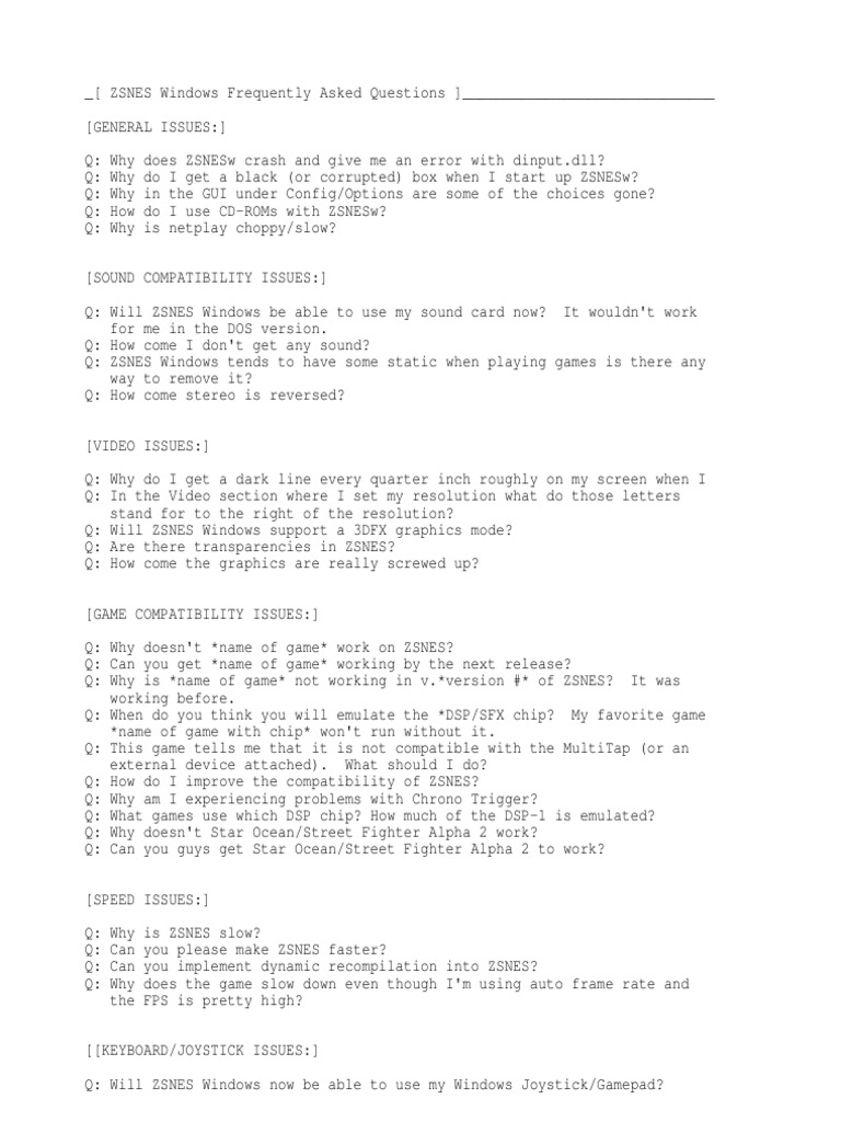 _[ ZSNES Windows Frequently Asked Questions ]______________________________