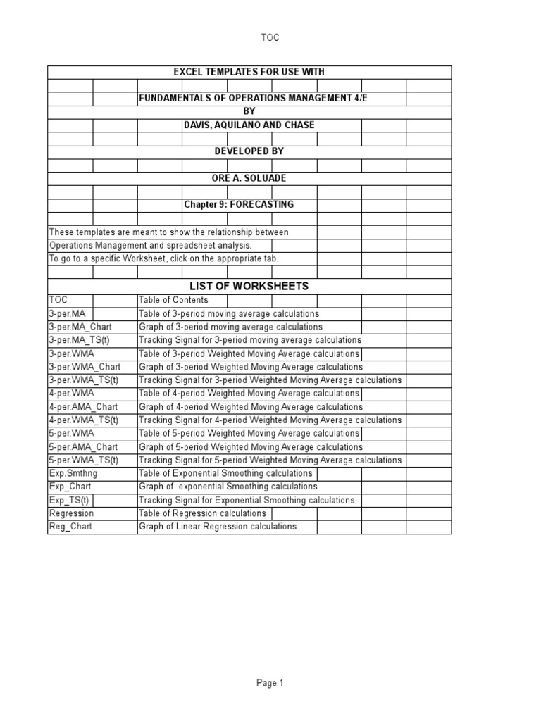 Operations Management and spreadsheet analysis.