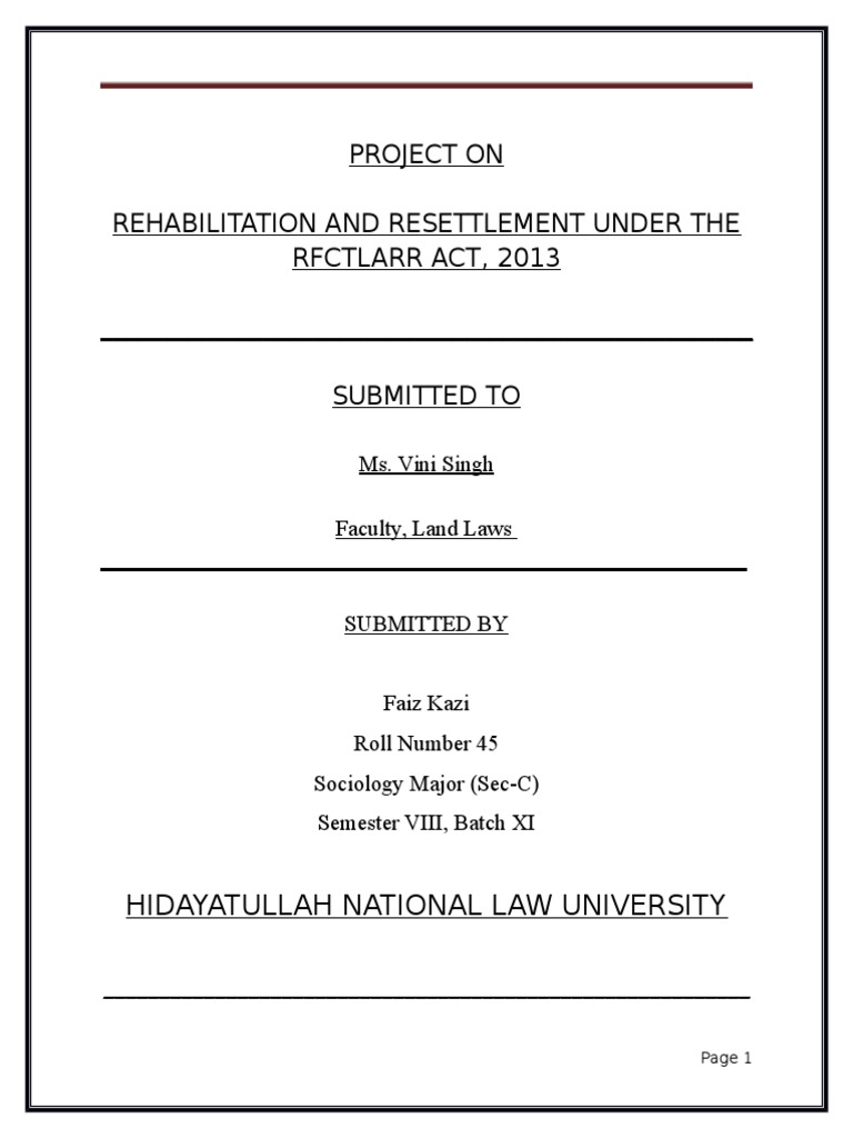 To understand the Rehabilitation and Resettlement proceedings, under this Act.