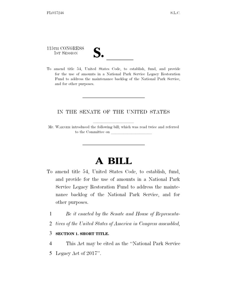 1 SEC. 2. NATIONAL PARK SERVICE LEGACY RESTORATION