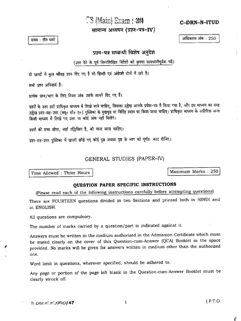 QUESTION PAPER SPECIFIC INSTRUCTIONS