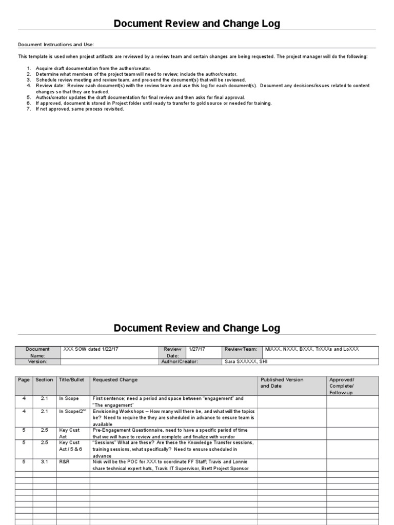 Document Review and Change Log