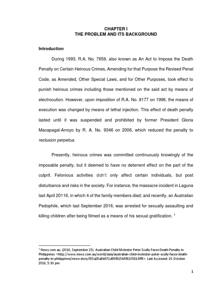 An Act to Impose the Death Penalty on Certain Heinous Crimes, Amending for
