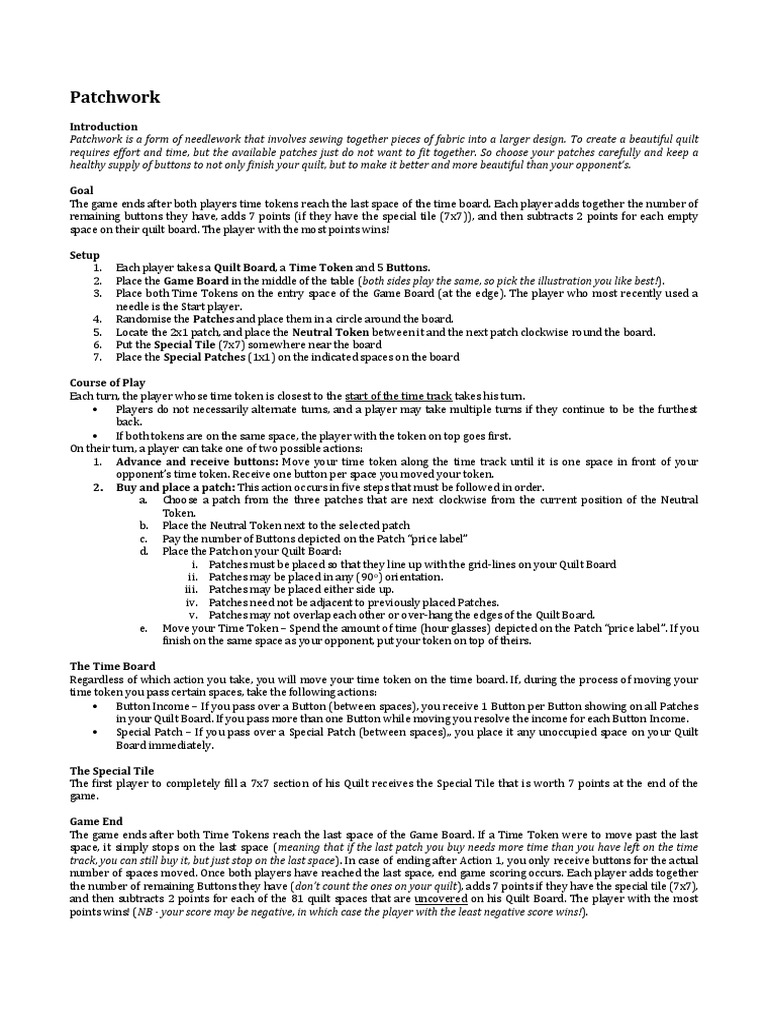 and then subtracts 2 points for each of the 81 quilt spaces that are uncovered on his Quilt Board. The player with the most