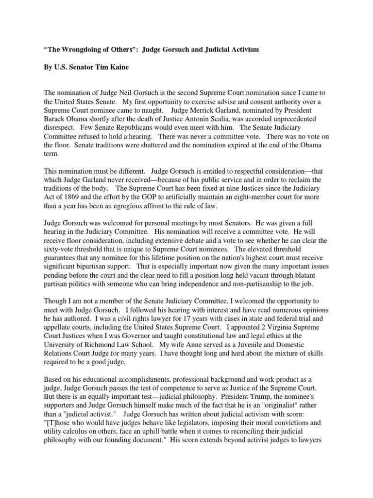 an activist. Judge Gorsuch is definitely a judicial activist.