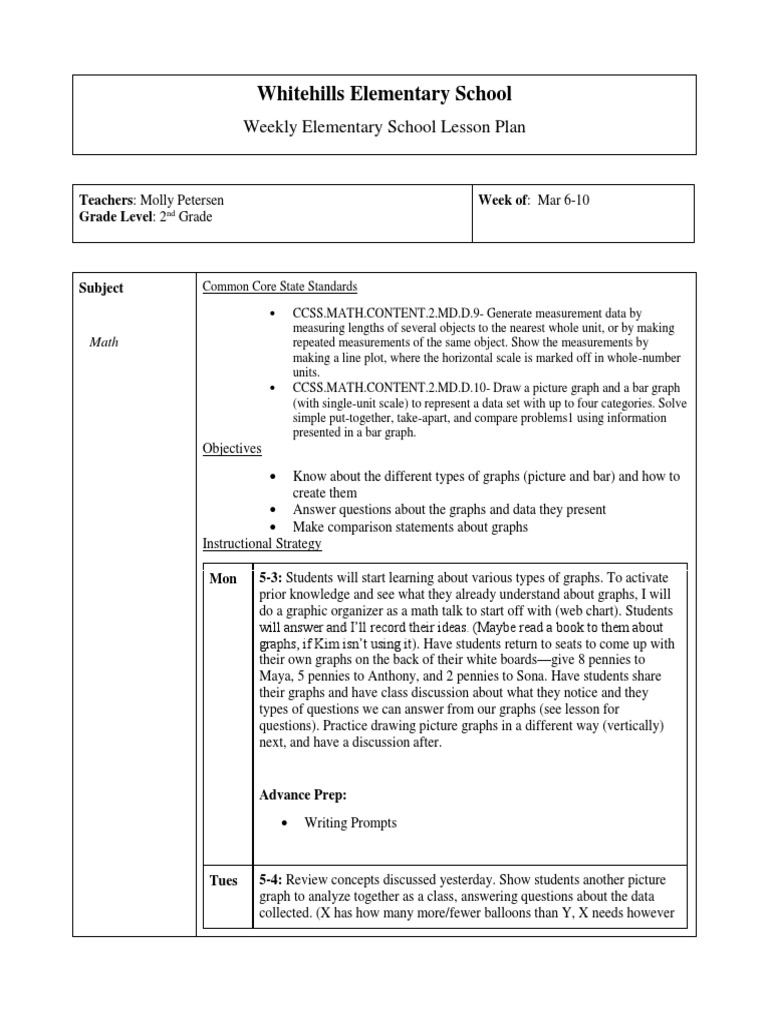 Weekly Elementary School Lesson Plan