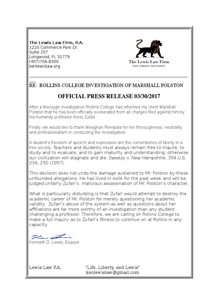 RE: ROLLINS COLLEGE INVESTIGATION OF MARSHALL POLSTON